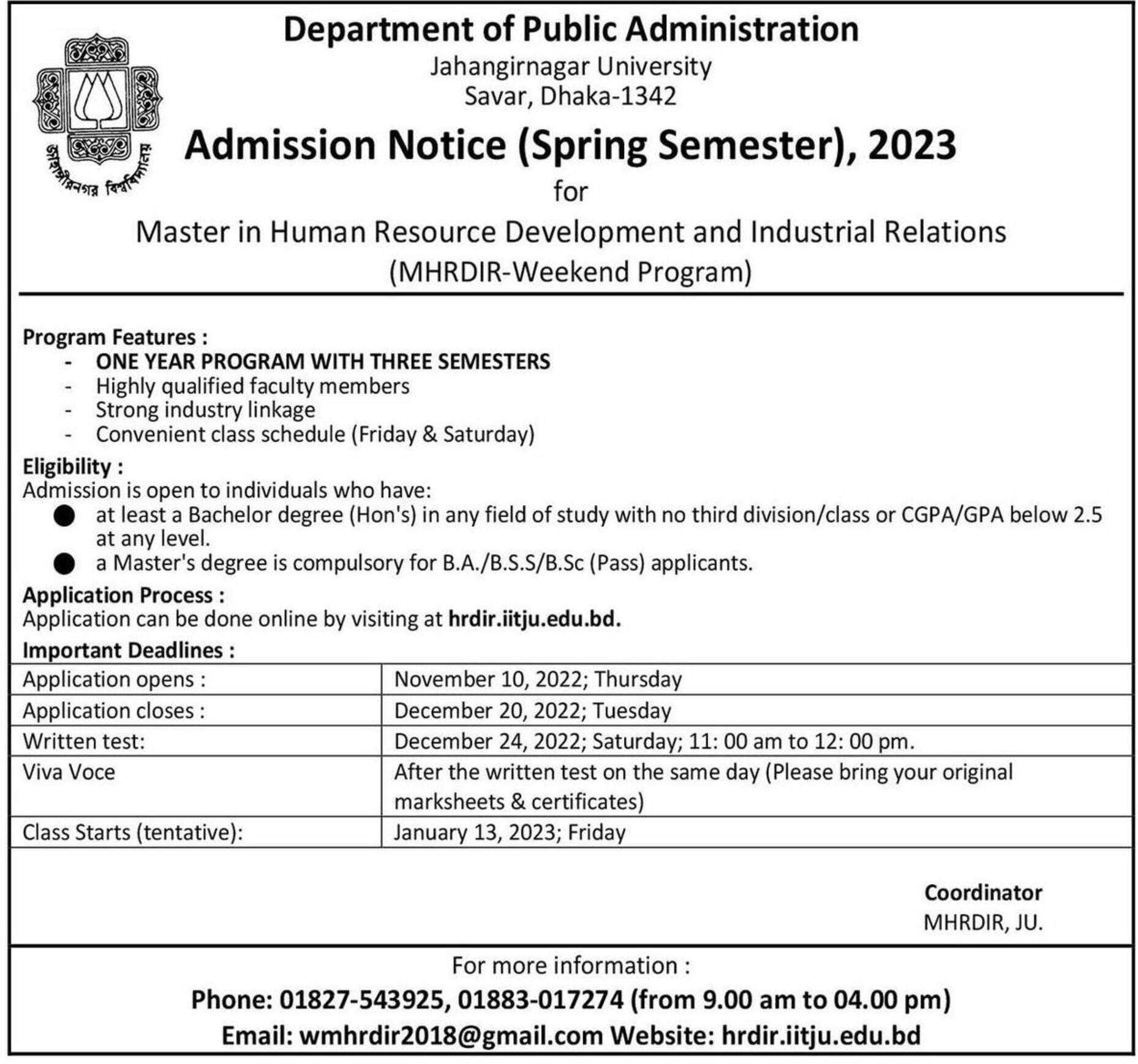 Master in Human Resource Development and Industrial Relations (MHRDIR-Weekend Program) | Jahangirnagar University