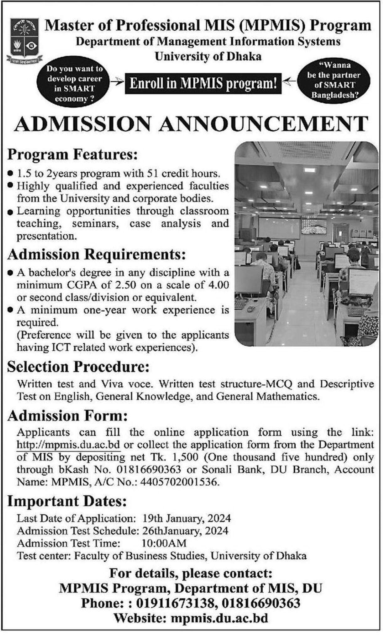 Master of Professional MIS Program | Dhaka University Dhaka University Last date of application: January 26, 2024