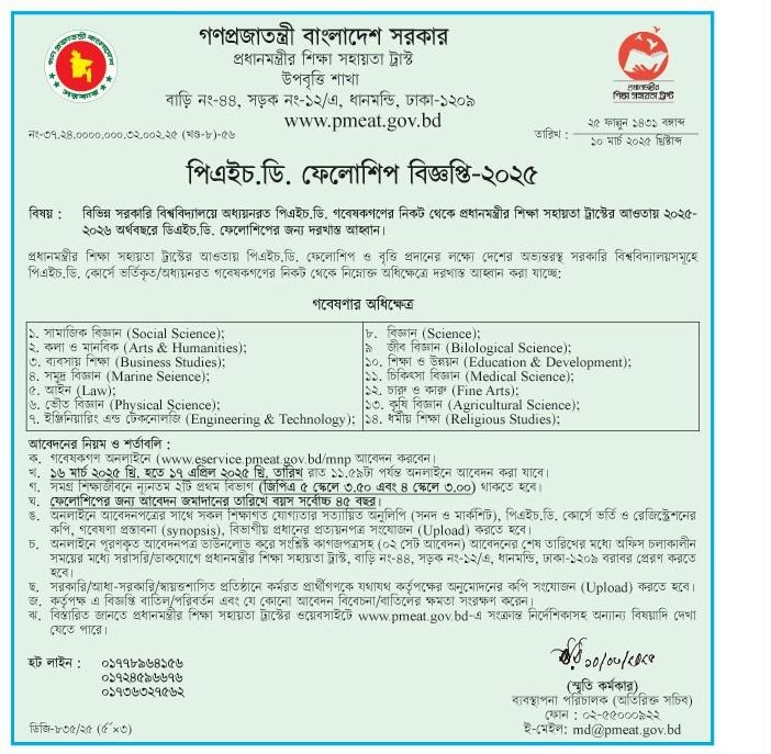 PhD Fellowship 2025 | Prime Minister's Education Assistance Trust | The People's Republic of Bangladesh