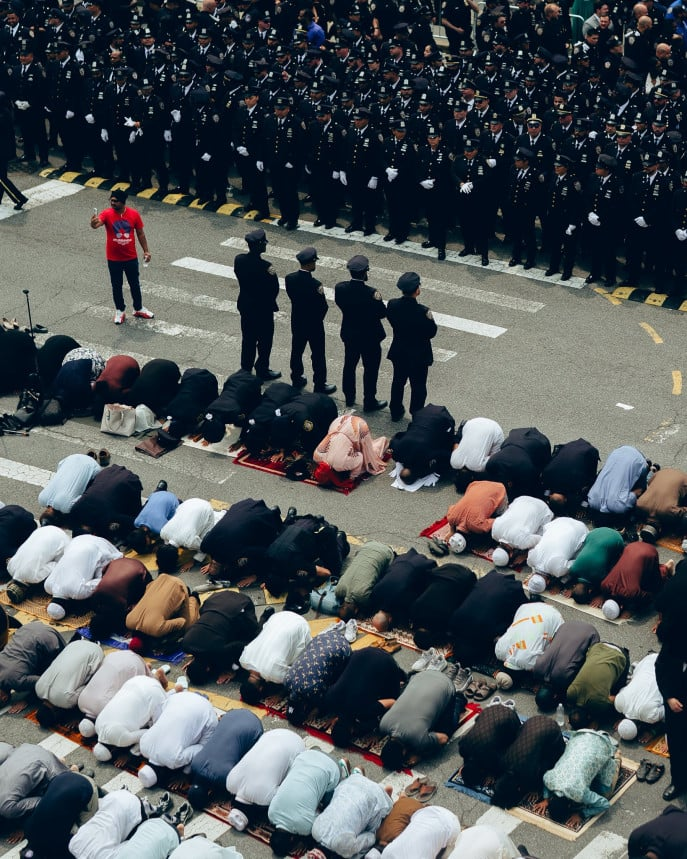 ছবিটি তোলা হয়েছে নিউইয়র্কের ব্রঙ্কসের জামে মসজিদের বাইরে নিউইয়র্ক পুলিশ বিভাগ-এনওয়াইপিডির অফিসার দিদারুল ইসলামের জানাজা থেকে। শোকাহত পরিবার, বিপুলসংখ্যক মুসল্লি এবং ইউনিফর্ম পরিহিত অসংখ্য পুলিশ সদস্য এমন আবেগঘন ছবিটি ক্যামেরা বন্দী করেন আমির হামজা।