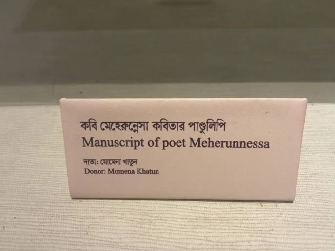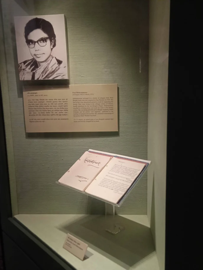 মুক্তিযুদ্ধ জাদুঘরে কবি মেহেরুন্নেসার প্রদর্শনশালা। ছবি: সালেহ শফিক/টিবিএস