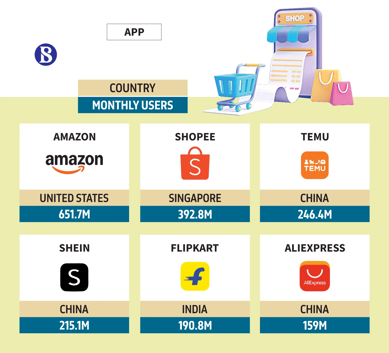 Most widely used e-commerce apps worldwide