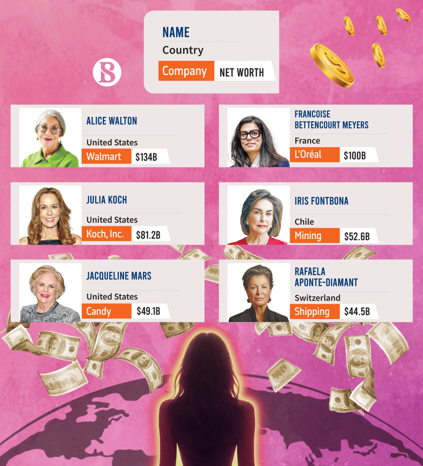 In 2026, the number of women billionaires has increased by 18.5% to 481, up from 406 in the previous year, accounting for 14% of all billionaires. Among the ten richest, Rafaela Aponte-Diamant remains the only self-made woman who made her own money rather than inheriting it.