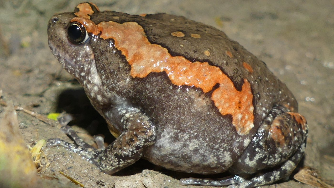 Painted globular frog from the Kukrail forest.