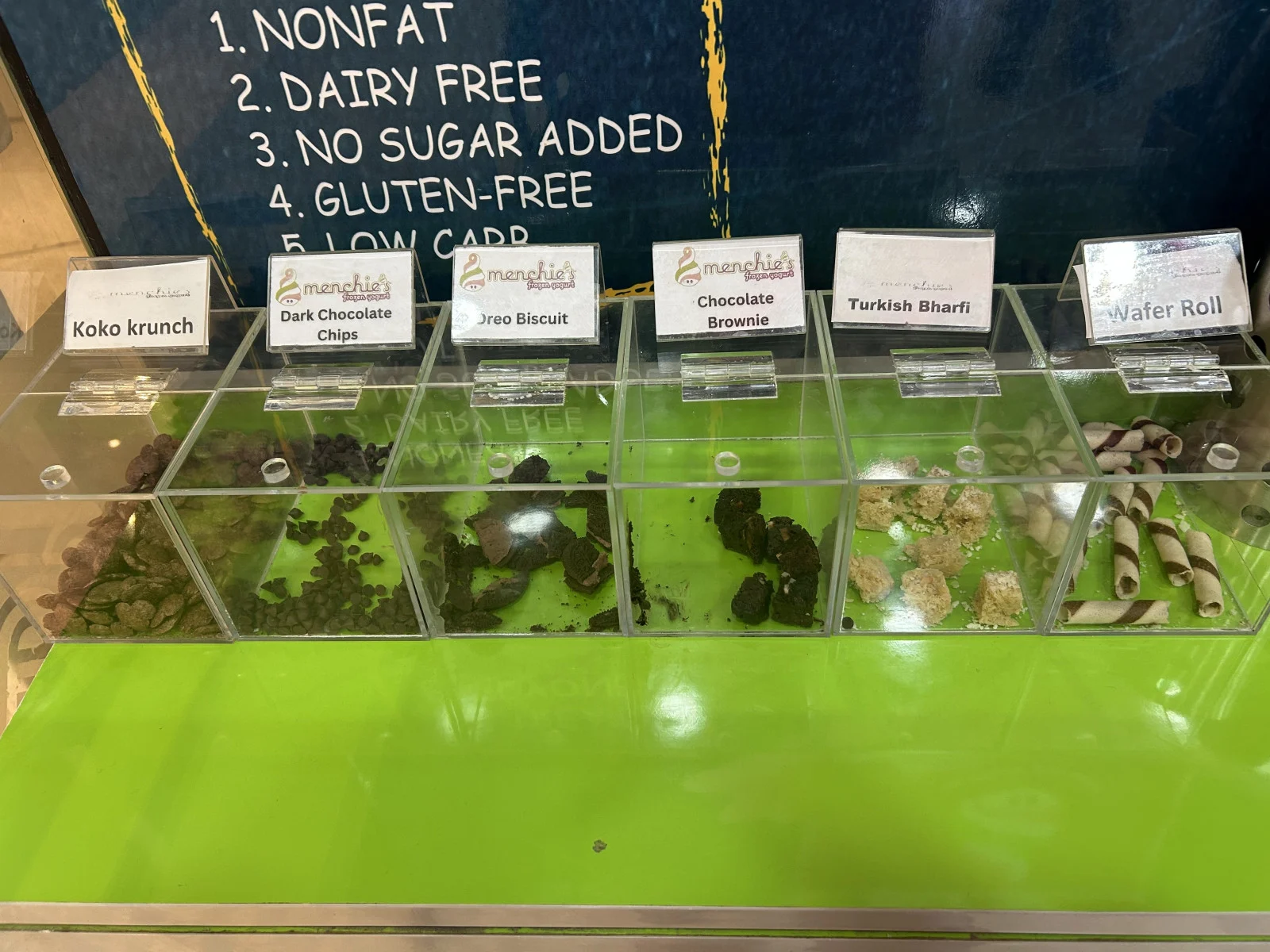 As for toppings, there is a wide variety of playful options—Koko Krunch, dark chocolate chips, Oreo biscuits, brownies, Turkish barfi and wafer rolls.