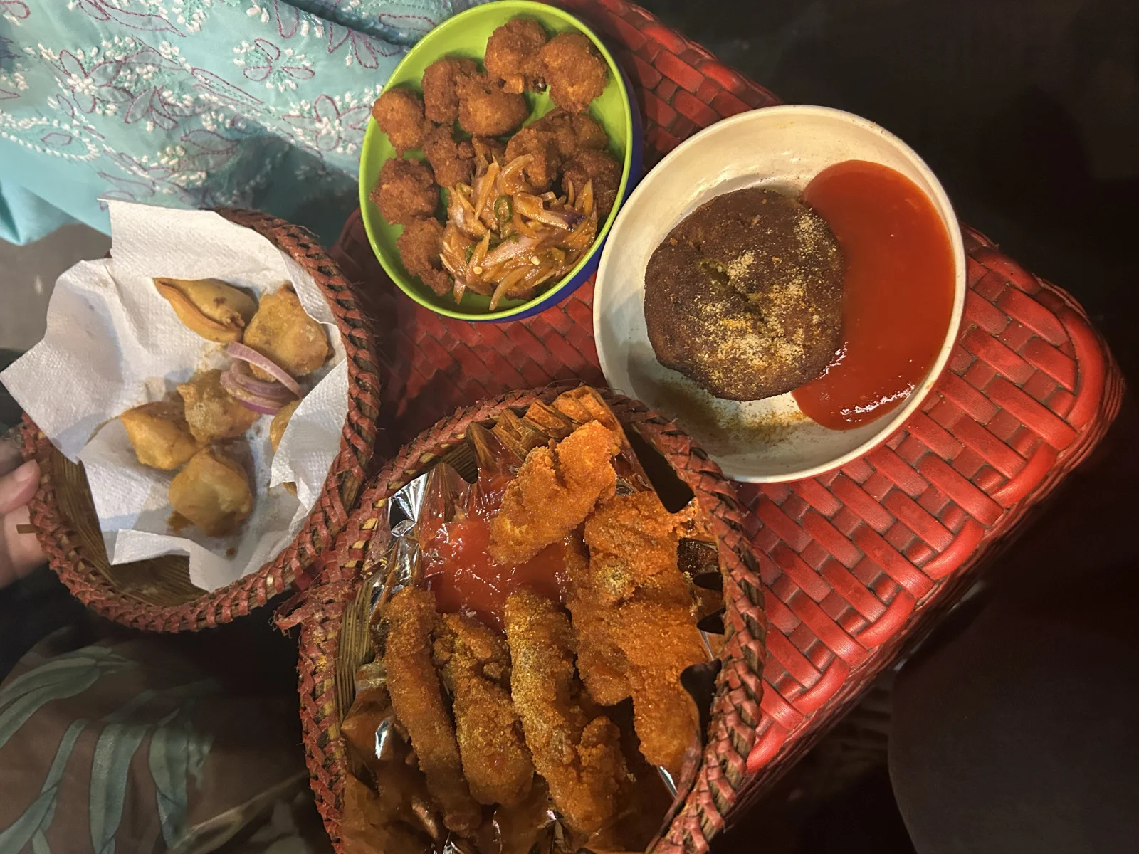 Their menu is simple, affordable and packed with flavour. We tried the mini beach shingara with onion rings, which was truly appetising. Their Patenga peyaju—crispy, spicy lentil-and-onion fritters—will transport you straight to Chattogram. The mutton chop is massive, perfectly seasoned and carries just the right amount of spice.