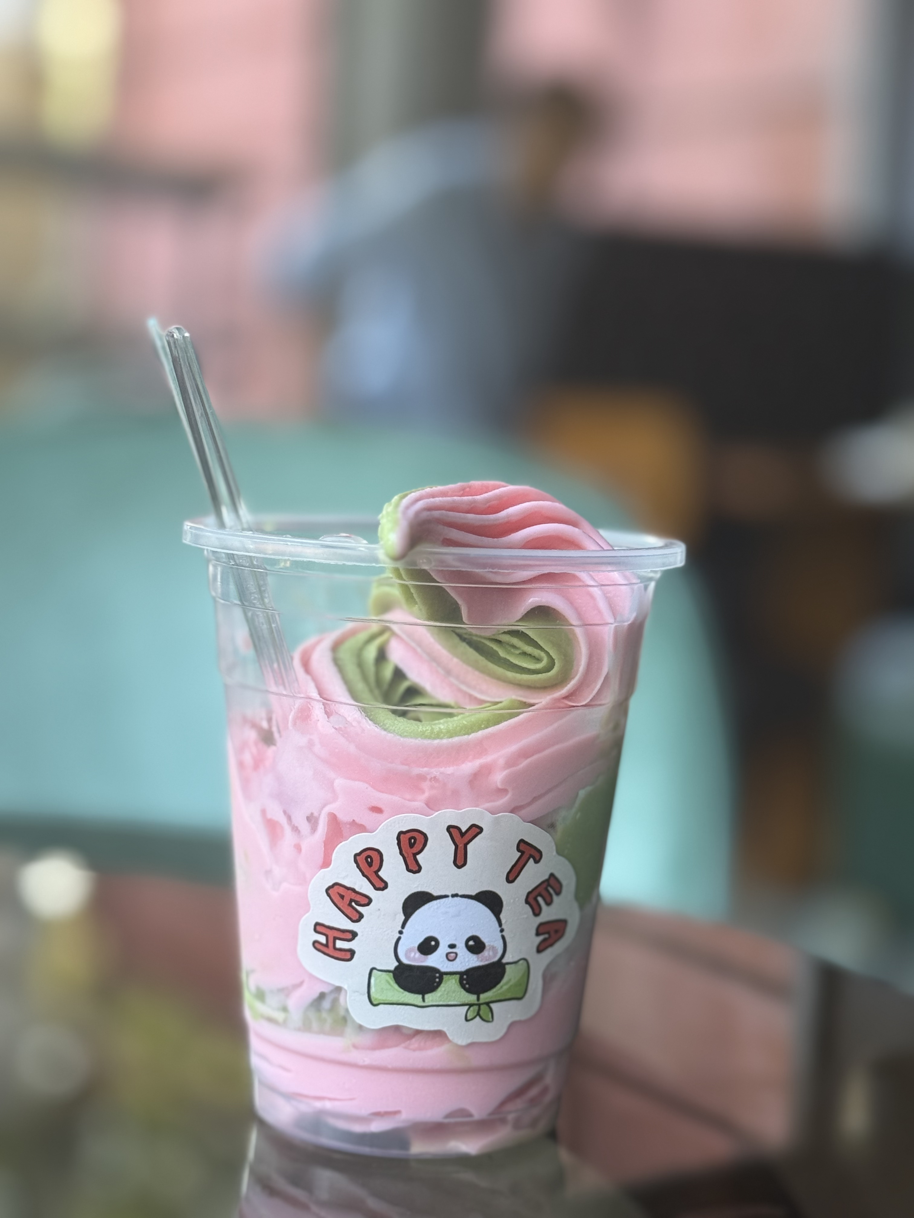 The strawberry portion tastes just like regular strawberry ice cream, while the matcha flavour is barely noticeable, overpowered by the strawberry in the swirl. Although it leaves a faint, slightly bitter aftertaste, it is not prominent unless you really pay attention.