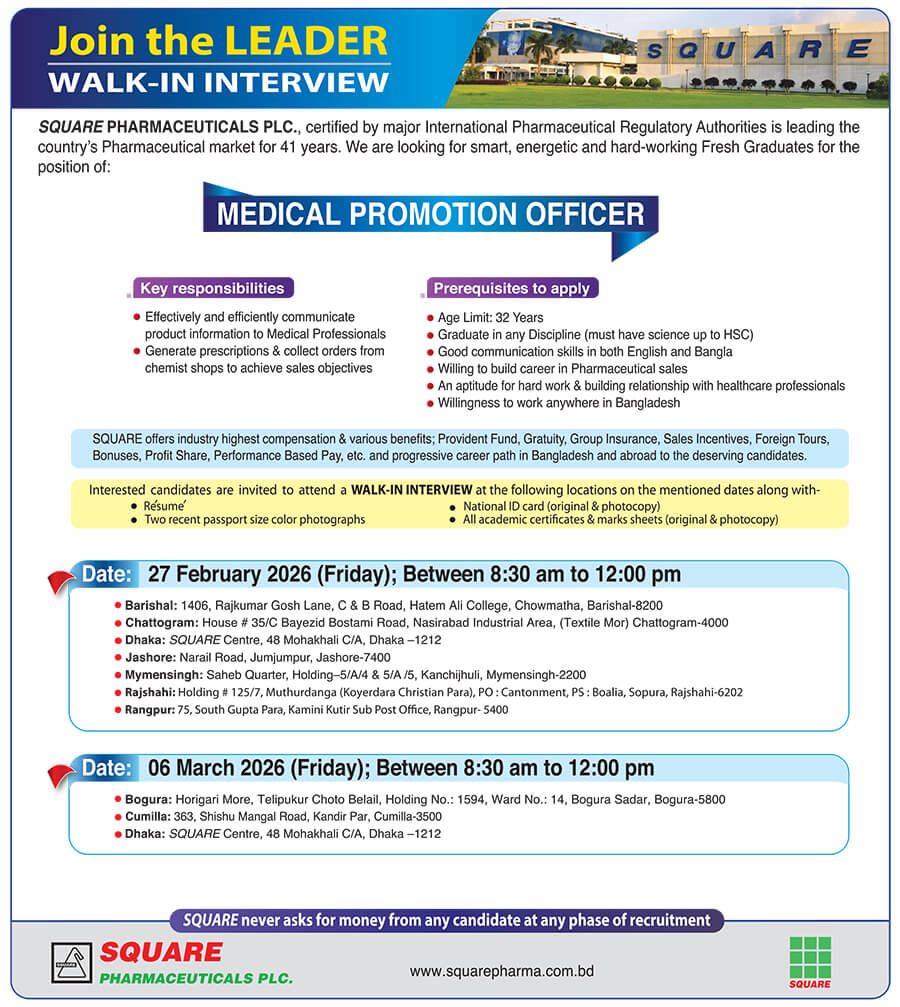 Medical Promotion Officer | Square Pharmaceuticals PLC.