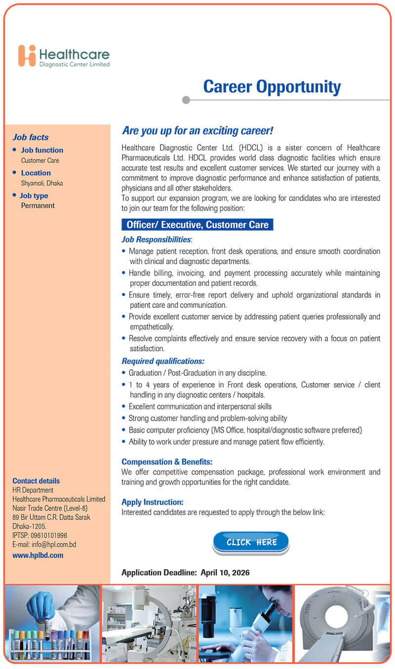 Officer/ Executive, Customer Care | Healthcare Diagnostic Center Limited