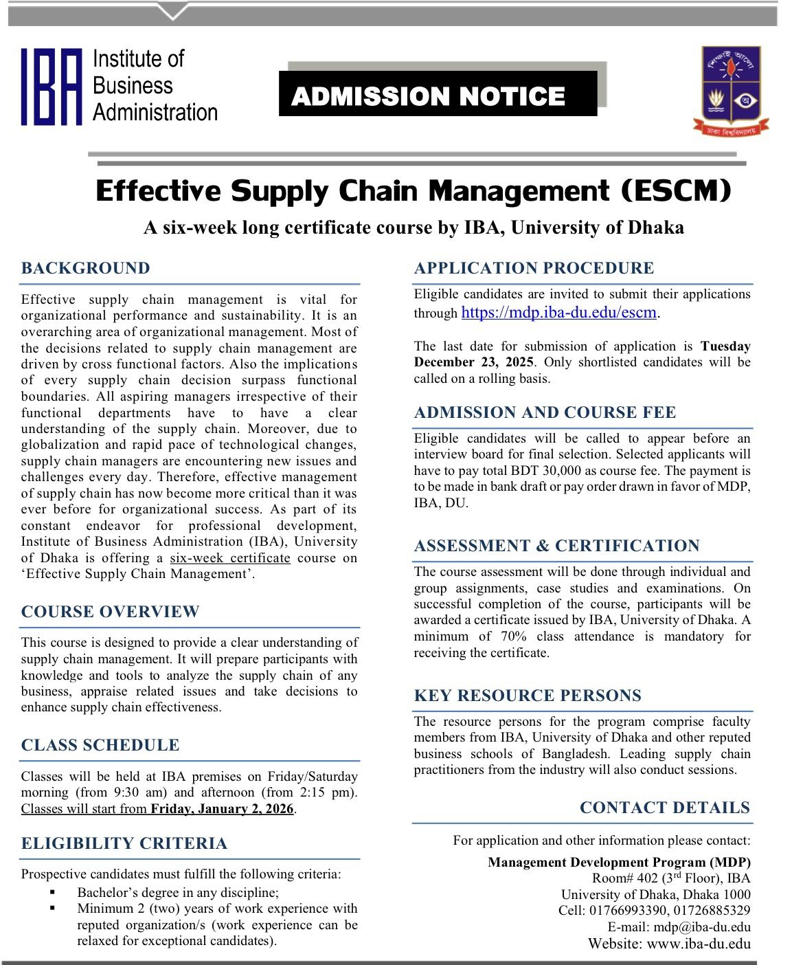 Eligible candidates can apply online through the following link: https://mdp.iba-du.edu/escm