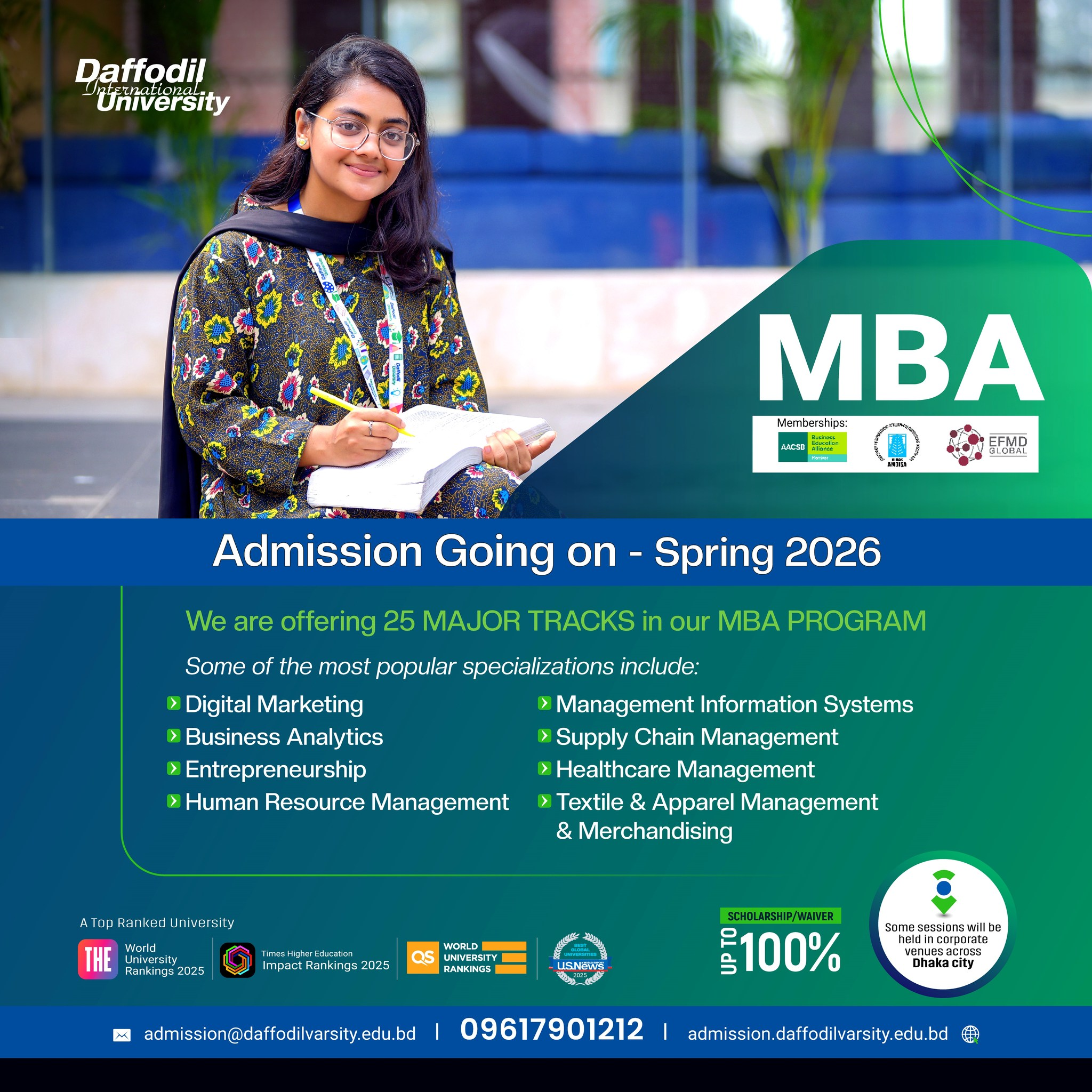 Daffodil International University (DIU) is pleased to announce that admissions for its Master of Business Administration (MBA) programme for the Spring 2026 session are now open. This world-class programme offers a diverse learning environment designed to significantly advance professional careers.