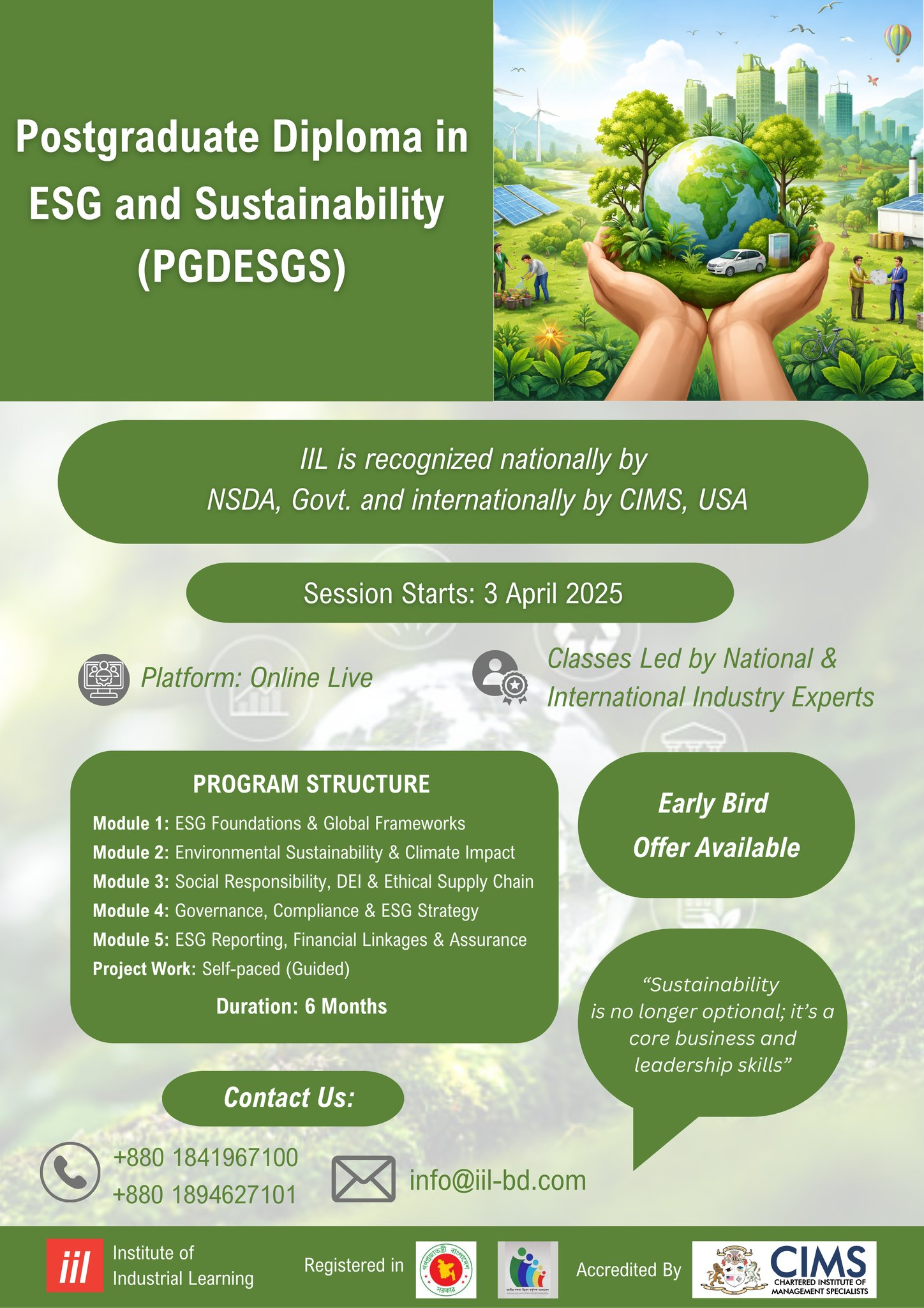 The Institute of Industrial Learning (IIL) has announced the opening of admissions for its Postgraduate Diploma in ESG and Sustainability (PGDESGS), a programme designed to equip professionals with the “core business and leadership skills” necessary for modern corporate governance.