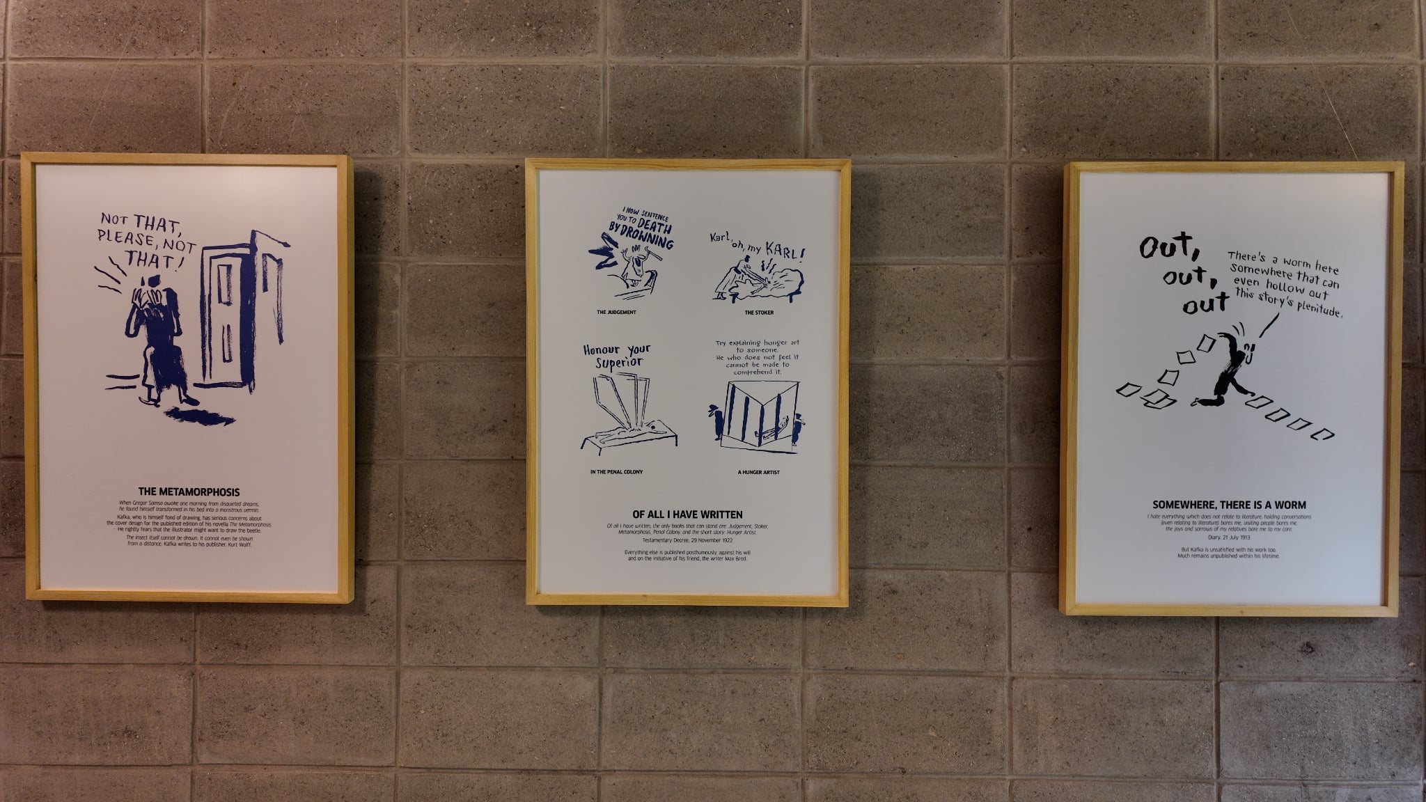 On the first floor, Austrian artist Nicolas Mahler’s comic exhibition The Complete Kafka offers a more fun yet equally profound take on Kafka’s life. Mahler’s minimalist black-and-white sketches strip down the complexity of Kafka’s prose into visual wit. His drawings—spare lines, exaggerated gestures, ironic captions—somehow capture the essence of Kafka’s humour and melancholy all at once.