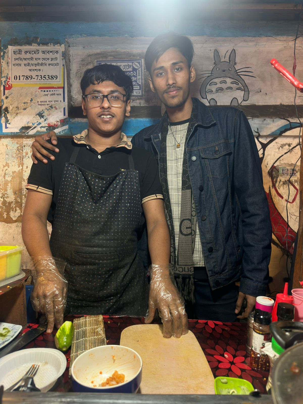 The owners, Enamul (21) and Hamim (23), are students and young entrepreneurs. Their menu began with wasabi and crab sticks before expanding to ramen. Their journey has not been easy. The two brothers started the business to support their family of five amid rising inflation. Since 2024, they have faced scams and fraud, but perseverance paid off. Today, they earn around Tk 80,000 a month and support both themselves and their family.