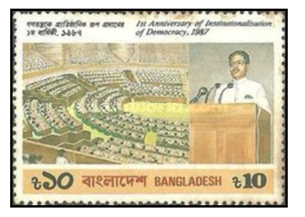 In 1982, stamps honoured the seven Bir Sreshtha, celebrating the heroes of the Liberation War. In 1985, the UN Decade for Women was marked with images of women as teachers, scientists, and weavers, highlighting empowerment and equality. The same year also celebrated the first SAARC Summit in Dhaka with stamps of the member countries’ flags and symbolic birds. In 1987, a stamp featuring President Hussain Muhammad Ershad marked the first anniversary of the institutionalisation of democracy, reflecting the political mood of the time. In 1989, Bangladesh joined global celebrations of the 200th anniversary of the French Revolution and inaugurated the Bangladesh Security Printing Press, showing both global awareness and national progress.