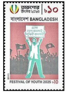 In the 2020s, Bangladesh’s stamps reflected political commemoration, national achievements, and generational change. 2020 marked the birth centenary of Sheikh Mujibur Rahman; most of the stamps focused on Bangabandhu and Sheikh Hasina, continuing a trend from the previous decade. Other than that, in 2021, stamps celebrated the 100th anniversary of Dhaka University, honoured the war heroines titled Biranganas, and highlighted Digital Bangladesh Day along with the launch of 5G services, emphasising the country’s technological progress. The following years featured major infrastructural milestones, including the 50th anniversary of Biman Bangladesh Airlines, the opening of the Padma Bridge, and the Dhaka Metro Rail system. In 2023, national pride centered on the SAFF Women’s Championship victory and the opening of the Bangabandhu Sheikh Mujibur Rahman Tunnel. The political trend shifted as the autocratic regime of the former government was overthrown, and student-led revolution created a new sense of identity and hope. Following this, stamps began celebrating youth and collective optimism, such as the “Festival of Youth” in 2024, continuing in 2025 with issues commemorating the July Uprising, reflecting the country’s renewed spirit and generational voice.